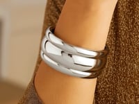 Sterling Silver Rhodium-Plated Bold Ribbed Cuff Bangle (25.00 mm) featuring a wide 25 mm ribbed design crafted in sterling silver with a bright rhodium finish for lasting shine. Its bold, sculptural silhouette creates a striking statement, while the open cuff style offers comfortable, effortless wear.