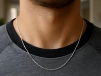 Crafted in sterling silver with a bright rhodium finish, this 1.50 mm round cable chain features smooth, polished links that offer both durability and a clean, modern shine, making it a versatile piece perfect for everyday wear or pairing with your favorite pendant.